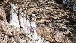 Burial of the dead in humanoid caskets and on the cliffs has been widely practiced by the Chachapoya people for centuries, throughout their history. Carefully placed in a nearly inaccessible position halfway through the cliff, these Purunmachos sarcophagi managed to escape the destruction of the invaders.